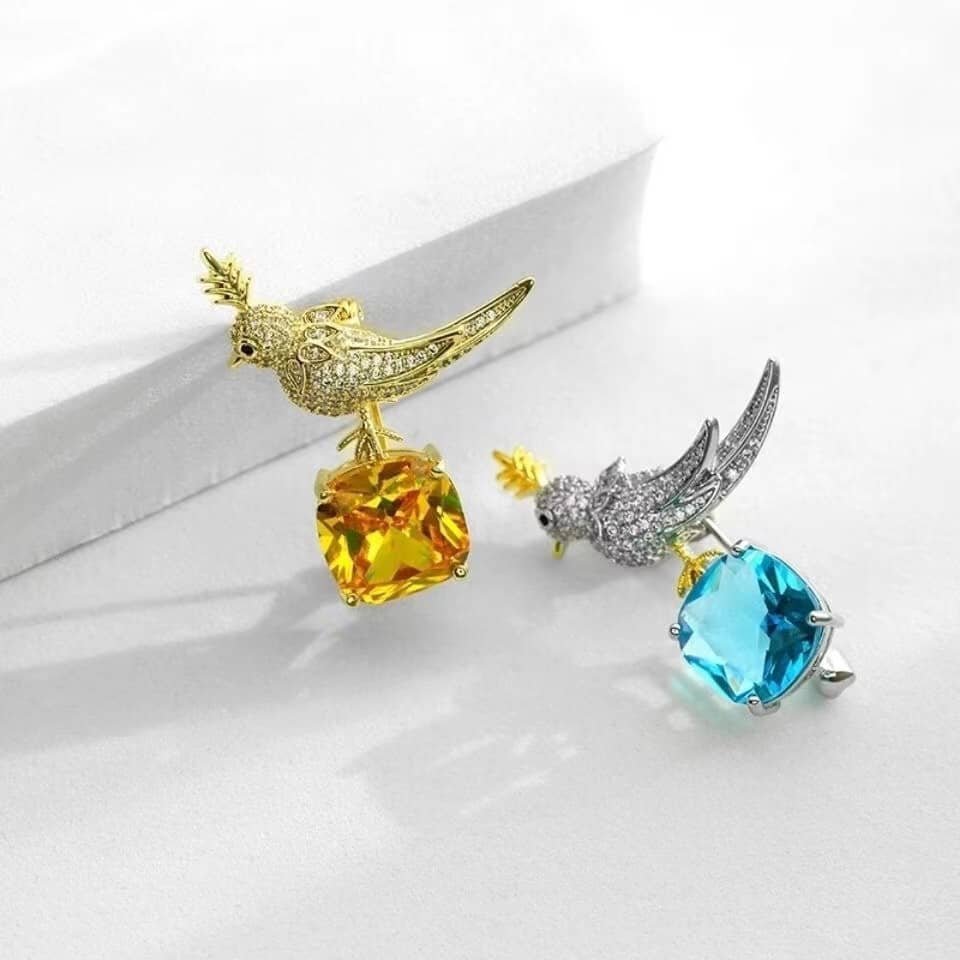 Crystal Bird Brooch – Yellow & Blue Gemstone