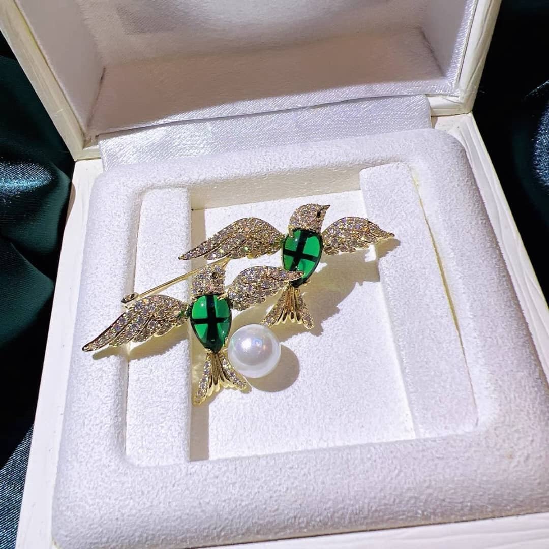 Be the first to review “Twin Emerald Birds with Pearl Brooch”